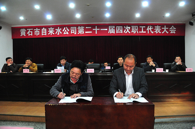 經(jīng)過職工代表們的認(rèn)真審議,會(huì)中,職代表通過了《公司工作報(bào)告》、《關(guān)于建設(shè)供水管網(wǎng)地理信息系統(tǒng)的議案》、《關(guān)于規(guī)范發(fā)放各項(xiàng)津貼、補(bǔ)貼及職工福利工作的議案(草案)》、《關(guān)于修訂職工交通補(bǔ)貼管理辦法的議案》、《關(guān)于提供職工早餐的議案》、和《關(guān)于調(diào)整退休職工計(jì)劃生育獎(jiǎng)勵(lì)標(biāo)準(zhǔn)的議案》;并對(duì)該公司領(lǐng)導(dǎo)班子及班子成員進(jìn)行了民主評(píng)議;最后,劉總經(jīng)理對(duì)職工代表提出在生產(chǎn)經(jīng)營(yíng)、職工培訓(xùn)、智能信息的運(yùn)用、職工福利等幾個(gè)方面的意見和建議進(jìn)行了解答;他代表公司與各基層單位簽定了《2015年度量質(zhì)化考核責(zé)任書》、《2015年度績(jī)效考核責(zé)任書》。