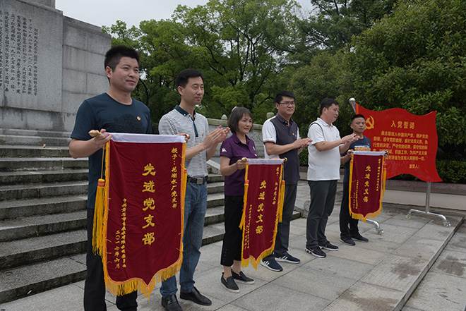 “我志愿加入中國(guó)共產(chǎn)黨……”一陣陣鏗鏘有力的宣誓聲在洪湖市湘卾西蘇區(qū)革命烈士陵園烈士紀(jì)念碑前回響,為慶祝中國(guó)共產(chǎn)黨建黨96周年,公司全體黨員170余人于6月17日、6月24日分批前往洪湖市開(kāi)展“七.一”革命傳統(tǒng)教育活動(dòng)。在洪湖市革命烈士陵園紀(jì)念碑前,現(xiàn)場(chǎng)對(duì)公司2016-2017年度先進(jìn)黨支部、優(yōu)秀黨員及黨務(wù)工作者進(jìn)行了表彰,管維公司黨支部等3個(gè)黨支部分別榮獲“先進(jìn)黨支部”稱(chēng)號(hào),黃先林等18名同志被授予“優(yōu)秀黨員”榮譽(yù)稱(chēng)號(hào),紀(jì)云霞等4位同志被授予“優(yōu)秀黨務(wù)工作者”榮譽(yù)稱(chēng)號(hào)。公司黨委書(shū)記、董事長(zhǎng)余曦對(duì)取得榮譽(yù)的集體、個(gè)人表示了肯定,勉勵(lì)大家以受表彰的先進(jìn)集體和個(gè)人為榜樣,不忘初心,充分發(fā)揚(yáng)黨組織戰(zhàn)斗堡壘作用及黨員先鋒模范作用,勇往直前、一如既往為公司供水工作作出努力。隨后,2017年新發(fā)展的18名預(yù)備黨員在烈士紀(jì)念碑前莊嚴(yán)地舉起右手宣誓、老黨員面對(duì)黨旗重溫了入黨誓詞,進(jìn)一步引導(dǎo)大家牢記黨員身份,強(qiáng)化黨員意識(shí)。表彰大會(huì)后,全體黨員跟隨園區(qū)講解員一起瞻仰革命烈士紀(jì)念館,傾聽(tīng)講解員講述洪湖這塊紅色土地上英雄先烈們的革命事跡。