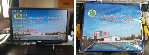 圖為公司制作的廉潔文化屏保、鼠標墊