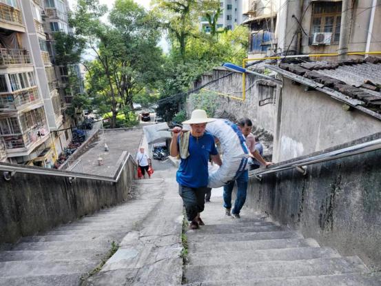 山頂距離城市供水主管網(wǎng)較遠,私房間間隔距離不一,通行僅靠石階步道,施工條件受限,市自來水有限公司根據(jù)現(xiàn)狀,決意在山下鳳凰山隧道旁DN160的PE管道上增加了一條200米的DN32PE補水管。7月16日,供水人山上山下兵分兩路,同時實施管道安裝,石階陡峭,他們肩挑手扛運送材料,烈日炙烤,大家在驕陽下?lián)]汗安裝。從清晨6時許至正午11時,兩組人一鼓作氣,順利碰通供水管,山頂居民打開水龍頭,又用上清亮潔凈的自來水,恢復(fù)了正常生活。