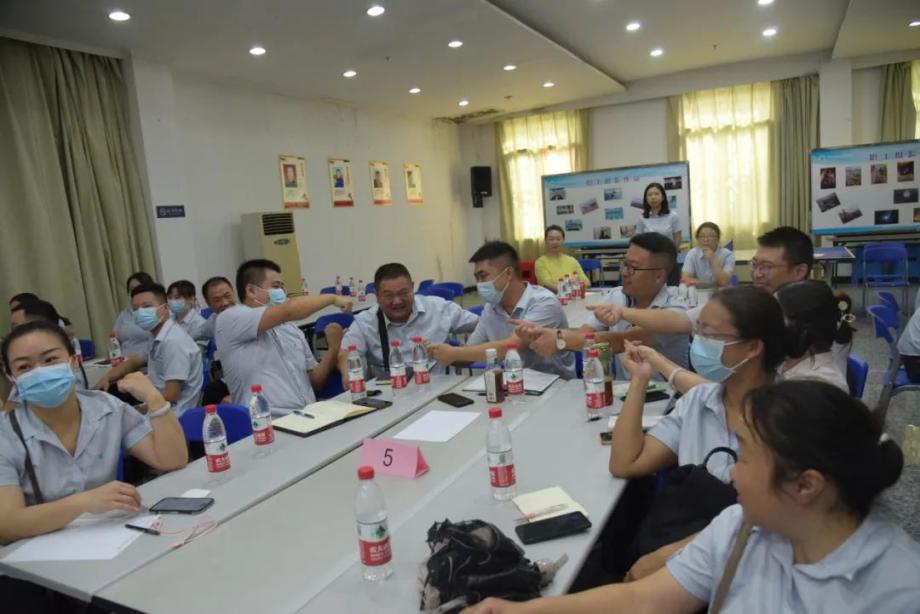 理解責(zé)任與忠誠、做到愛崗敬業(yè),既是滿足“孩子面包自由”的生活需求,也是實現(xiàn)自我價值提升的途徑,更有著滿足全市市民用水需求的重要意義。來自知書習(xí)禮(黃石)文化傳播有限公司的老師諄諄引導(dǎo)參與人員認(rèn)知工作的意義、崗位的責(zé)任。職工們分組圍坐,組建團(tuán)隊,為團(tuán)隊冠名,選出心儀的領(lǐng)隊,在“移花接木”的小游戲中與隊友開始熟絡(luò),踴躍搶答老師提出的問題,為團(tuán)隊爭奪到獎分歡呼雀躍,課堂氣氛活躍。
