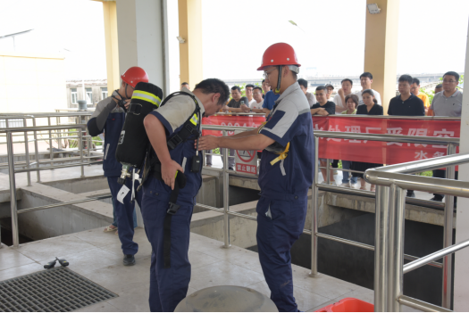 為認(rèn)真貫徹落實(shí)安全生產(chǎn)月工作要求,切實(shí)加強(qiáng)全體員工對受限空間作業(yè)安全的認(rèn)識和應(yīng)急處置能力, 6月17日上午,緊扣“人人講安全 個(gè)個(gè)會(huì)應(yīng)急-暢通生命通道”安全生產(chǎn)月主題,市水務(wù)集團(tuán)污水公司在花湖污水處理廠組織開展受限空間應(yīng)急演練活動(dòng)。集團(tuán)領(lǐng)導(dǎo)及各基層單位員工共計(jì)30余人觀摩了本次活動(dòng)。