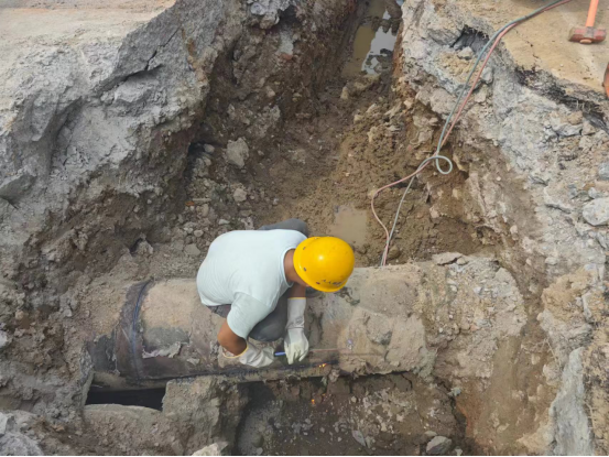 而與此同時,20多公里外,廣州路DN600供水管道遷改項目施工現(xiàn)場。工人們正在清理溝槽、焊割工對施工的管件進行切割。。。。。。各工序正有條不紊的推進。