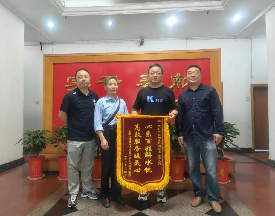 4月11日上午,金棗苑月亮灣13棟五六層居民代表將一面印有“心系百姓解水憂 高效服務暖民心”的錦旗送至黃石市水務集團客服中心,感謝集團徹底解決了困擾居民多年的高層水壓不足問題。據(jù)了解,因管網(wǎng)老舊和地勢因素,該樓棟五、六層住戶長期面臨用水難題。高峰期水流如線、熱水器無法啟動,洗衣做飯等基本生活需求都成困擾。2025年3月,客服中心接訴即辦,積極響應群眾訴求,組建專班實地勘察,迅速制定改造方案,經(jīng)過為期2天的緊張施工,徹底解決了小區(qū)居民的吃水難題??头行闹魅螀纬航舆^錦旗時表示:這面錦旗既是榮譽更是鞭策,下一步,黃石水務集團將繼續(xù)堅持“用戶至上”的服務理念,在工作中用心、用情、用力為用戶創(chuàng)造良好的用水環(huán)境,真正把優(yōu)質服務落實在行動上。