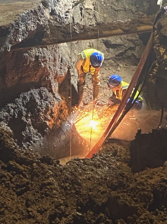 圖為7月12日凌晨,水務(wù)集團(tuán)正在進(jìn)行黃石大道DN600供水管道遷改連通作業(yè)。