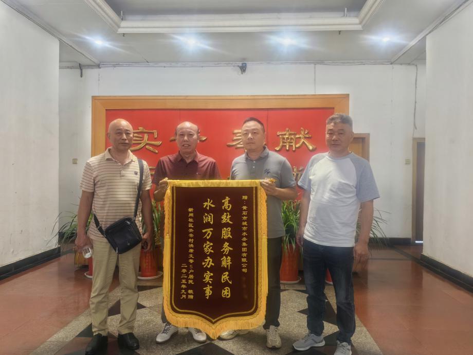 2025年9月23日,關(guān)帝村村民代表一行四人專程來(lái)到市水務(wù)集團(tuán)沈家營(yíng)辦公區(qū),將一面印有“高效服務(wù)解民困,水潤(rùn)萬(wàn)家辦實(shí)事”字樣的錦旗,鄭重交到黃石市水務(wù)集團(tuán)客服中心負(fù)責(zé)人手中,以此表達(dá)對(duì)水務(wù)集團(tuán)傾力解決他們多年用水難題的誠(chéng)摯謝意。這面錦旗的背后,是一段跨越行政區(qū)域界限、多方協(xié)作保障民生的暖心故事。