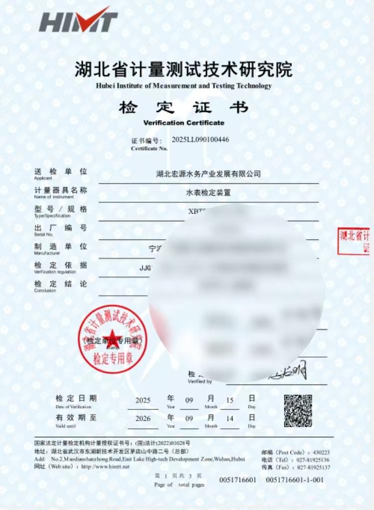 近期,湖北省計量測試技術(shù)研究院對宏源公司水表檢定中心水表檢定裝置開展年度考核工作。經(jīng)多輪嚴苛檢測,該中心的相關(guān)裝置全部符合國家標準要求,成功取得檢定證書,為中心后續(xù)開展供水計量工作的精準性筑牢技術(shù)根基。