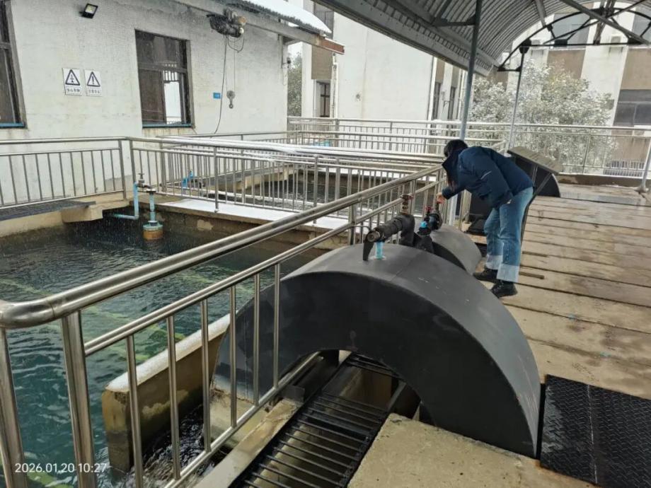 1月20日,黃石入冬首場(chǎng)強(qiáng)降雪來(lái)襲,氣溫驟降對(duì)城市供水設(shè)施和管網(wǎng)運(yùn)行帶來(lái)不小考驗(yàn)。記者在涼亭山水廠看到,調(diào)度大廳內(nèi)的壓力監(jiān)測(cè)屏幕上,各時(shí)段出廠壓力穩(wěn)定在 0.33-0.35Mpa的標(biāo)準(zhǔn)區(qū)間,工作人員冒著風(fēng)雪穿梭在廠區(qū)開(kāi)展巡檢,確保每一滴水都能安全送達(dá)市民家中。